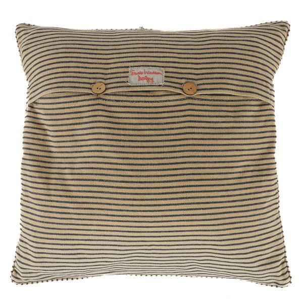 Modern The blue, saffron and ochre coloured stripe and triangle design, with piped edging and striped reverse, with Susie Watson Designs label, 50cm x 50cm