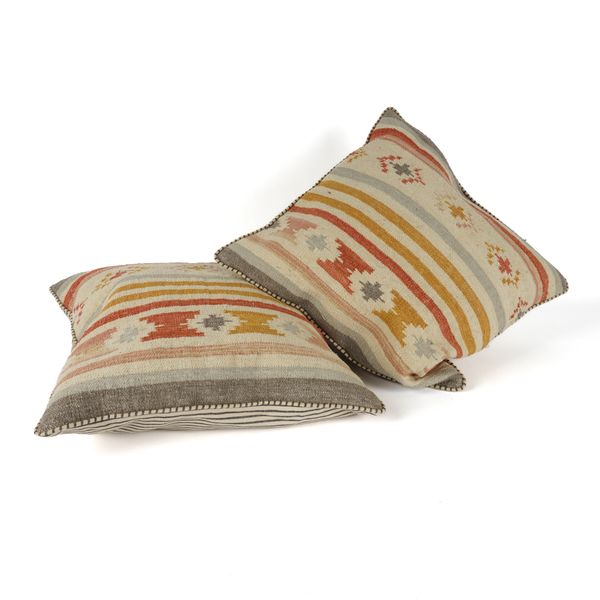 SUSIE WATSON DESIGNS: TWO KILIM DESIGN WOOL CUSHION COVERS (2)