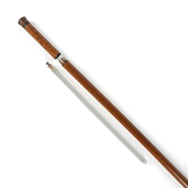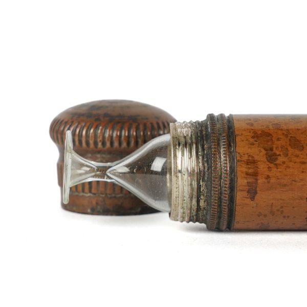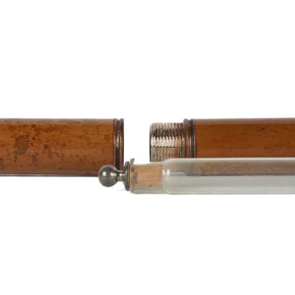 Late 19th Century/ Early 20th Century With screw top opening to reveal a small drinking glass, the handle unscrewing to reveal a stoppered glass cylinder for alcohol, 91cm long