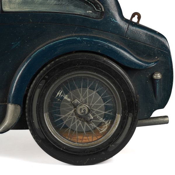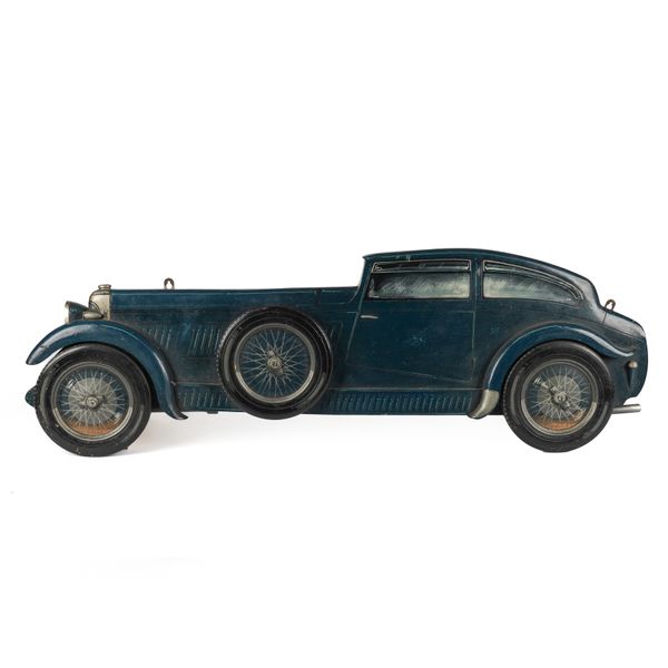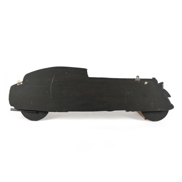 A PAINTED WOOD WALL PLAQUE MODELLED AS A VINTAGE BENTLEY