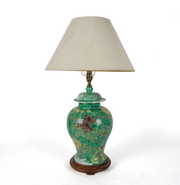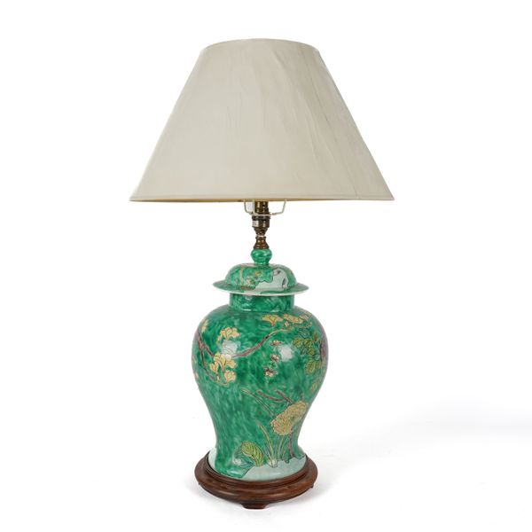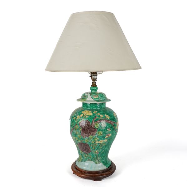 A CHINESE HAND-PAINTED CERAMIC GINGER JAR LAMP
