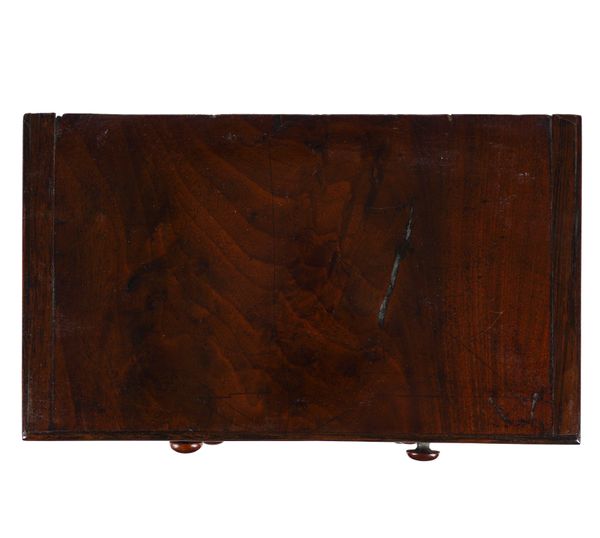 19th Century With two short and three long drawers, bun handles and shaped apron, 27.5cm wide; 16.5cm deep, 32cm high