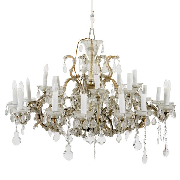 AN ITALIAN GLASS MOUNTED GILT-METAL TWENTY-FOUR LIGHT CHANDELIER