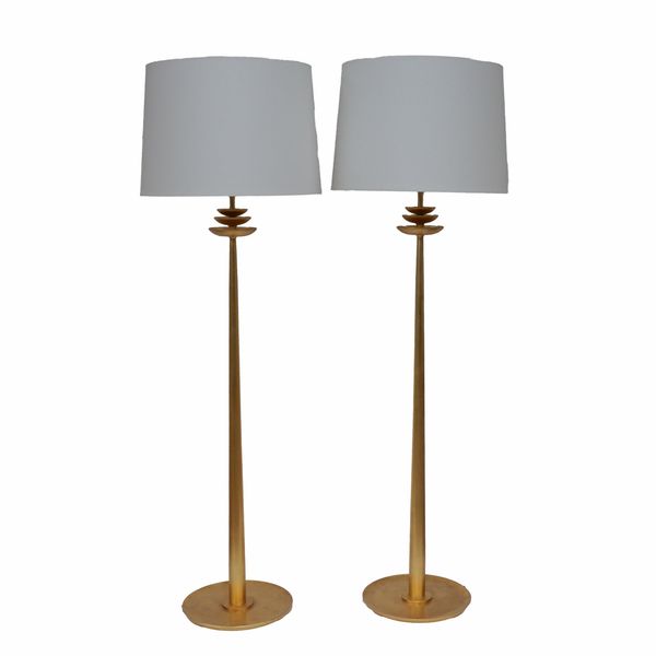 A PAIR OF GILT-METAL FLOOR STANDING LIGHTS OR STANDARD LAMPS (2)