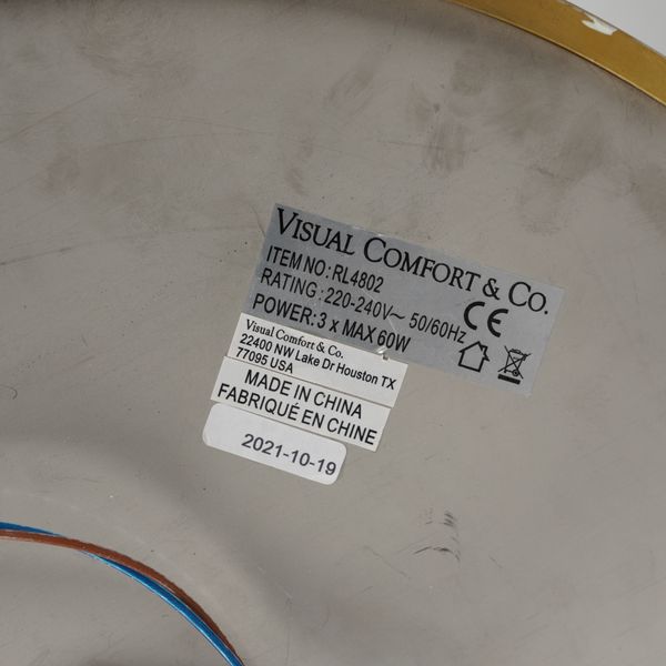 RALPH LAUREN: THREE GILT-METAL AND OPALINE GLASS MOUNTED PLAFFONNIERS OR CEILING LIGHTS (3)