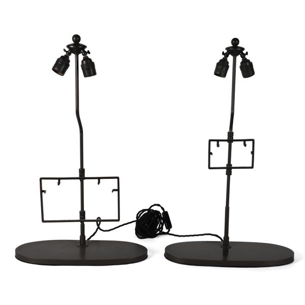 A NEAR PAIR OF BLACK FRAME MOUNTED TABLE LAMPS (2)