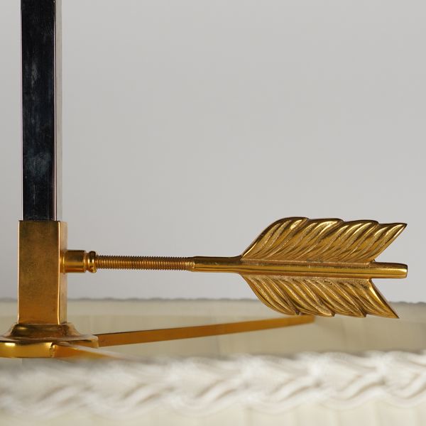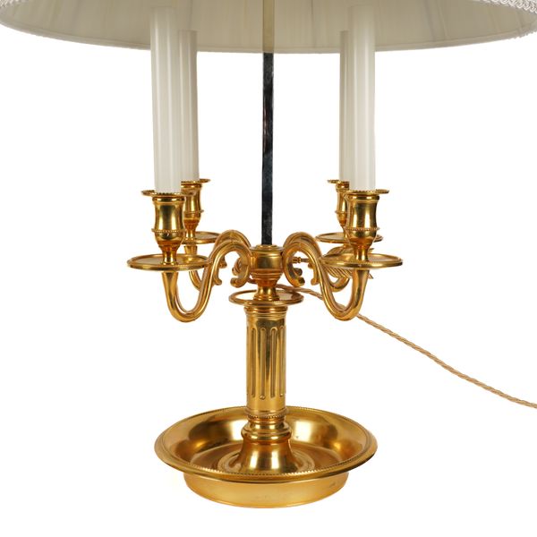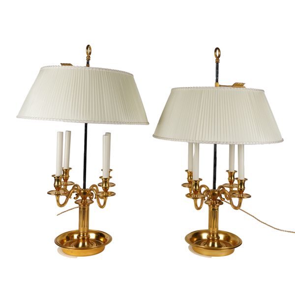 A PAIR OF LOUIS XVI STYLE GILT-METAL FOUR LIGHT BOUILOTTE STUDENT TABLE LAMPS (2)