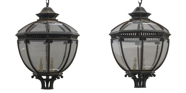 A PAIR OF OCTAGONAL GLASS HANGING LANTERNS (2)
