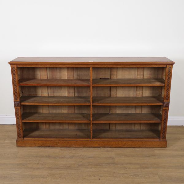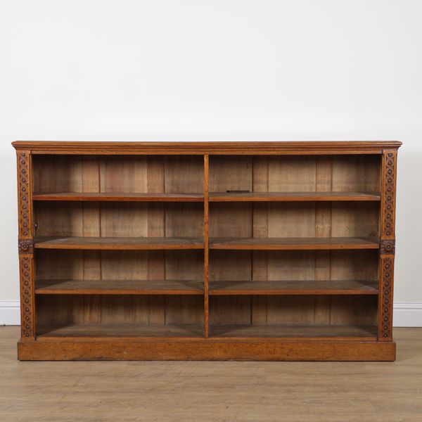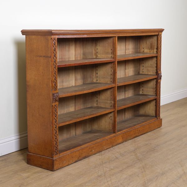 With Celtic knot work carved upright supports, 199cm wide; 34cm deep; 115cm high