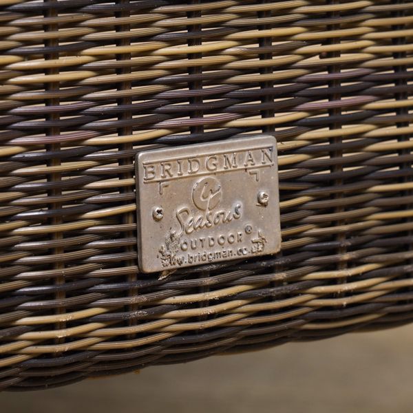 BRIDGMAN; A RATTAN OVAL GARDEN TABLE (13)