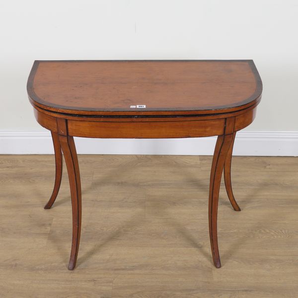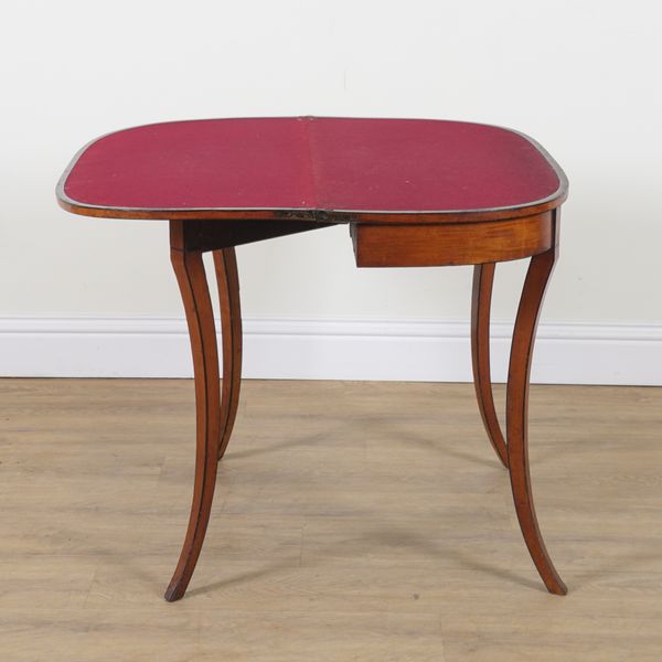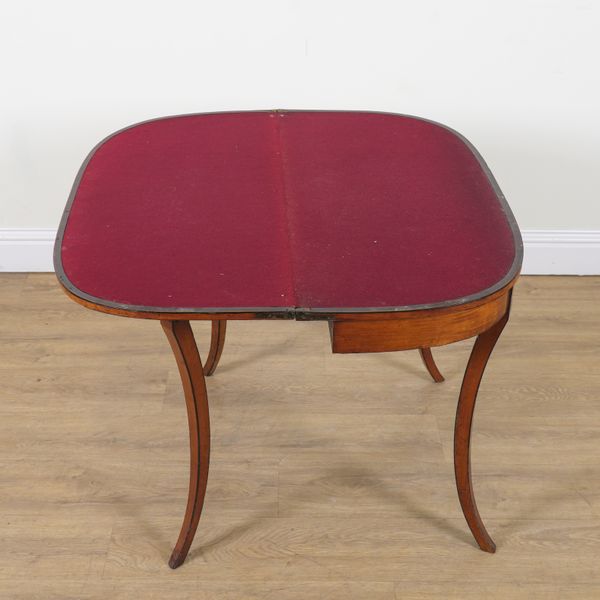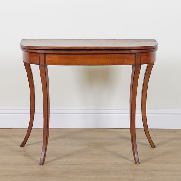 A REGENCY ROSEWOOD BANDED SATINWOOD D-SHAPED FOLDOVER GAMES TABLE