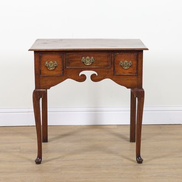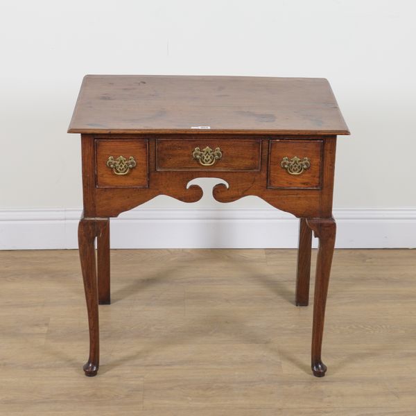 A MID 18TH CENTURY FRUITWOOD THREE DRAWER LOWBOY