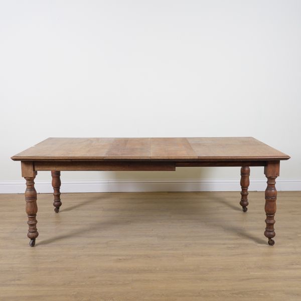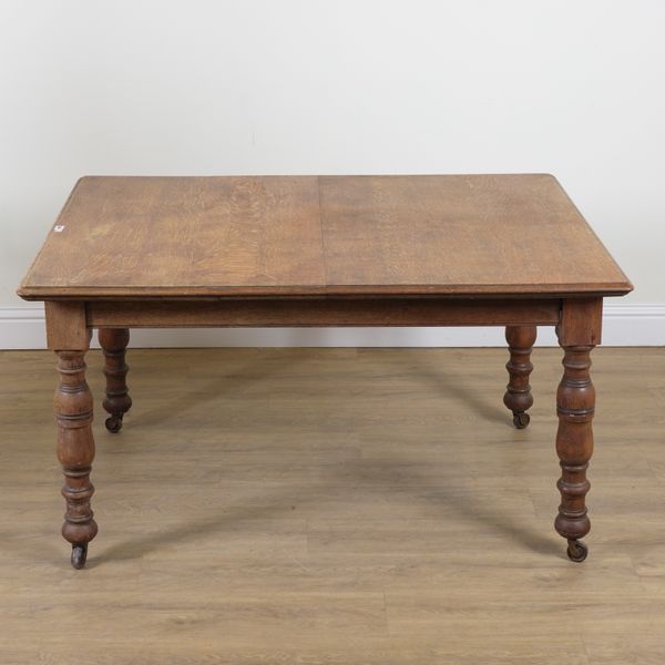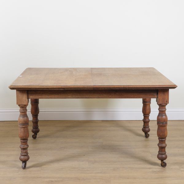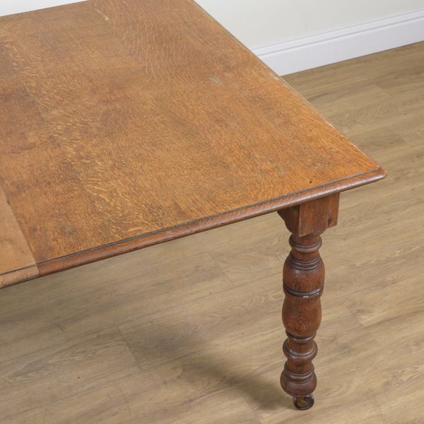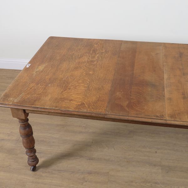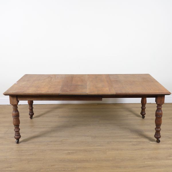 A VICTORIAN OAK EXTENDING DINING TABLE