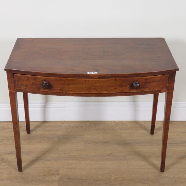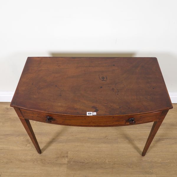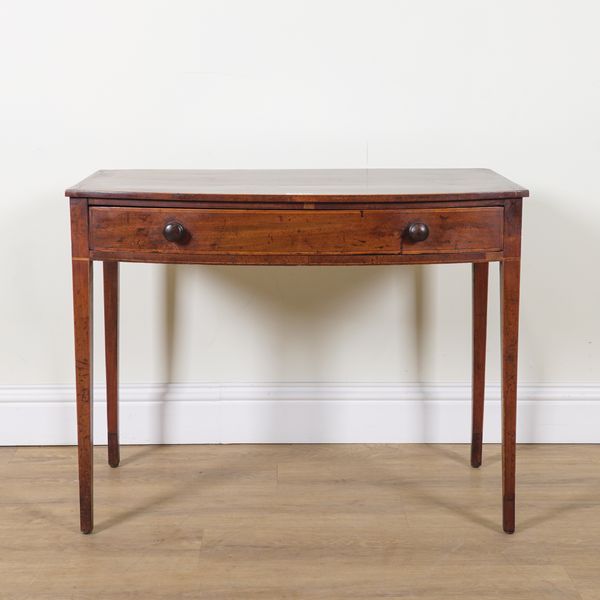 A GEORGE III MAHOGANY BOWFRONT SINGLE DRAWER SIDE TABLE