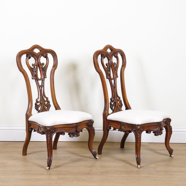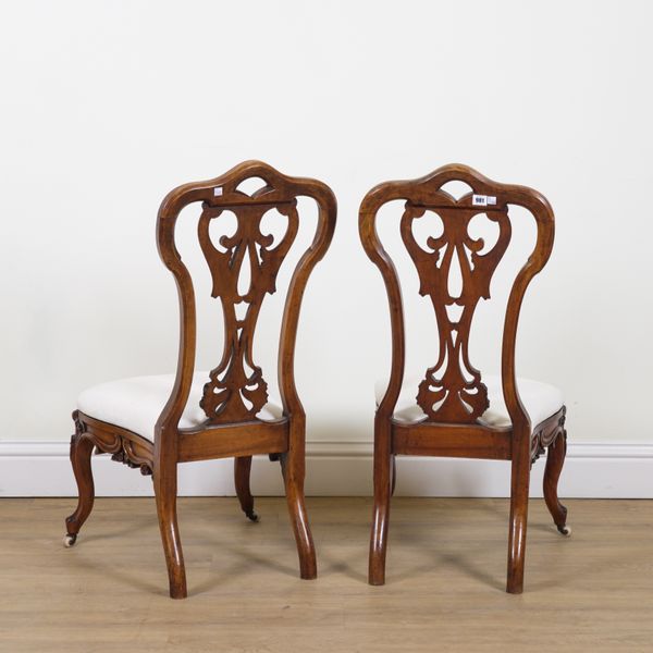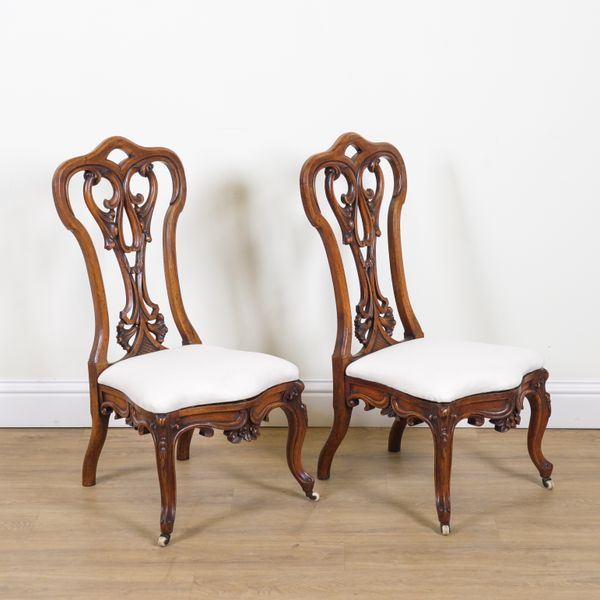 A PAIR OF VICTORIAN WALNUT LOW SIDE CHAIRS (2)