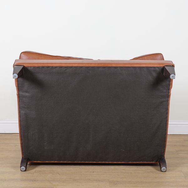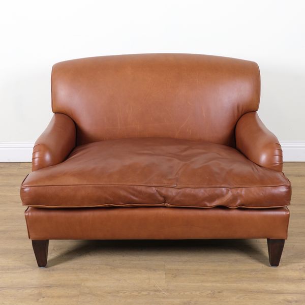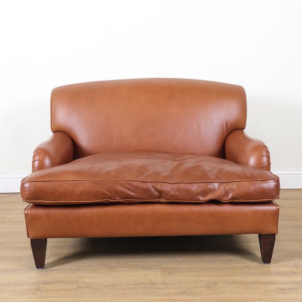 A TAN LEATHER UPHOLSTERED TWO SEAT SOFA