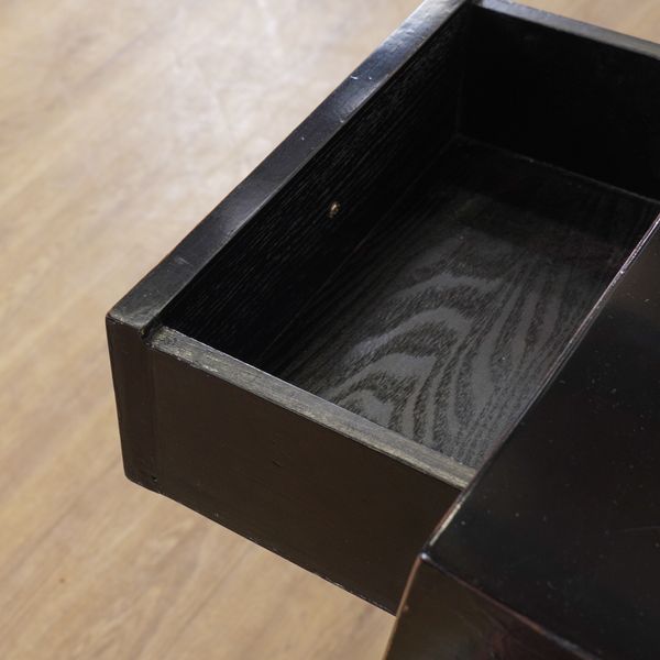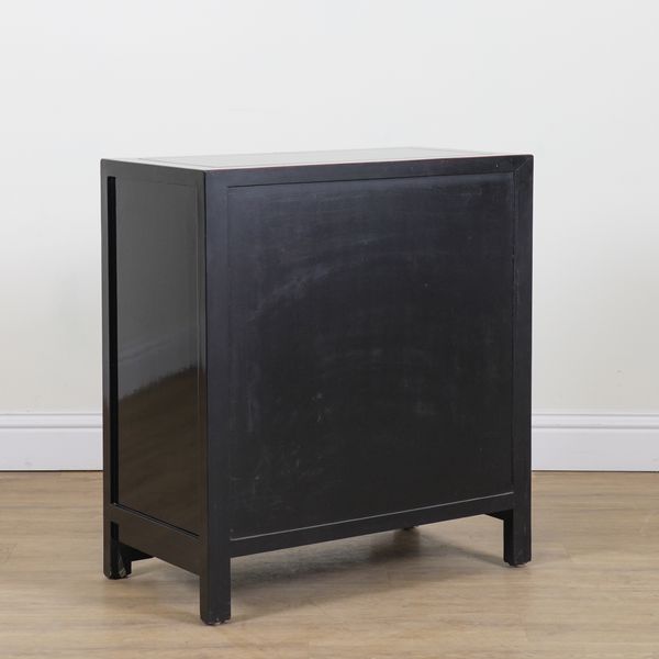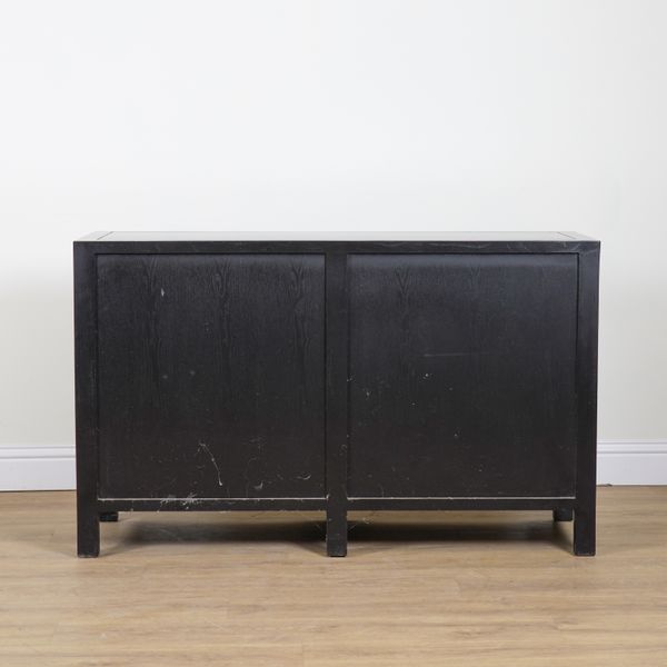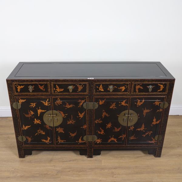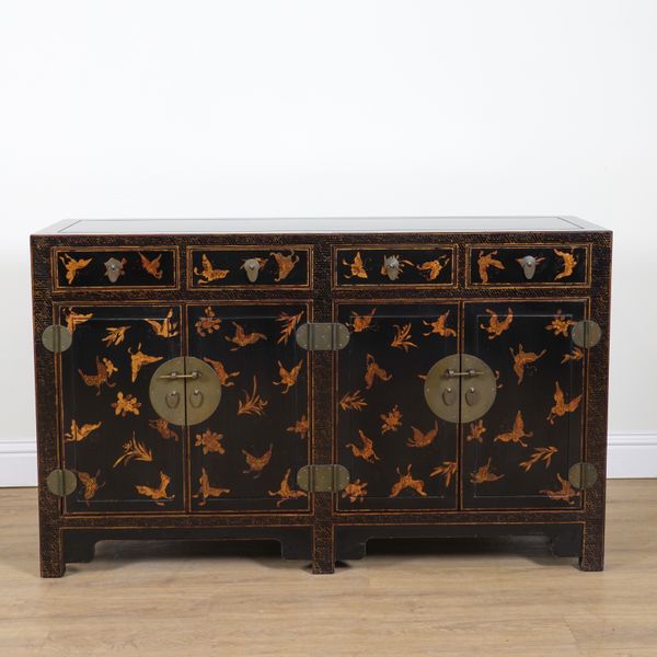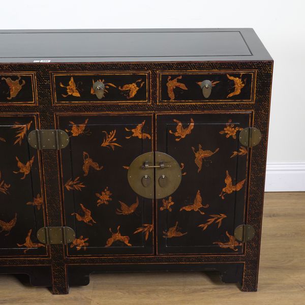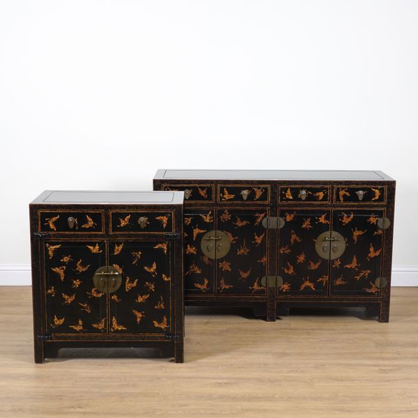 A BLACK LACQUER CHINOISERIE DECORATED SIDEBOARD (2)