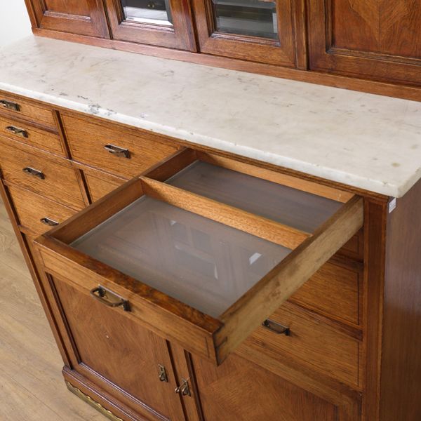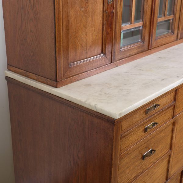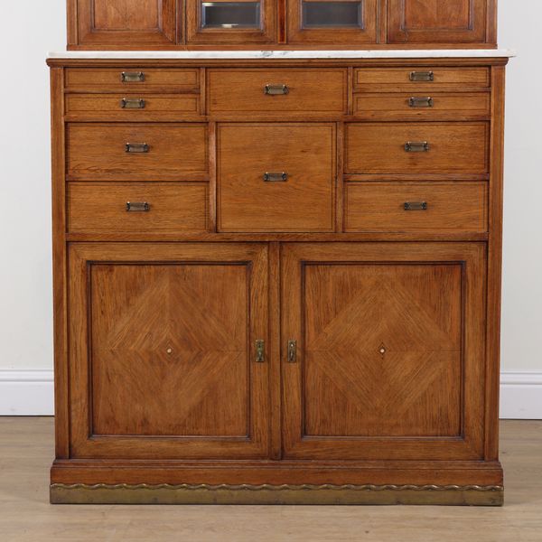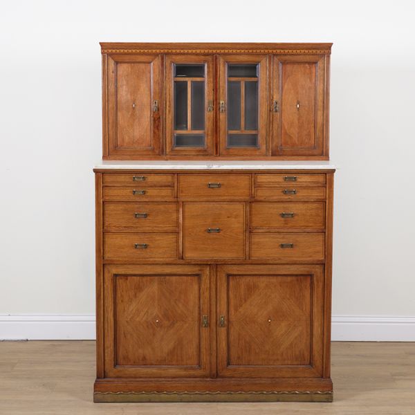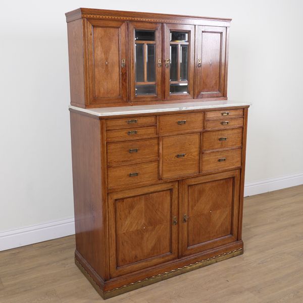 AN EARLY 20TH CENTURY INLAID OAK DENTIST'S CABINET