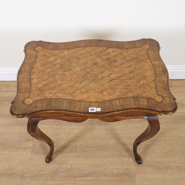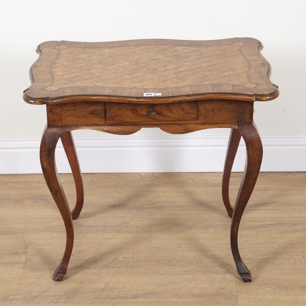 A LATE 19TH CENTURY FRENCH OAK PARQUETRY INLAID SIDE TABLE