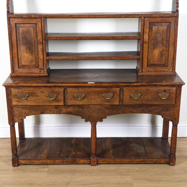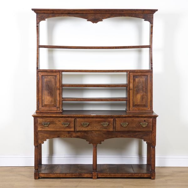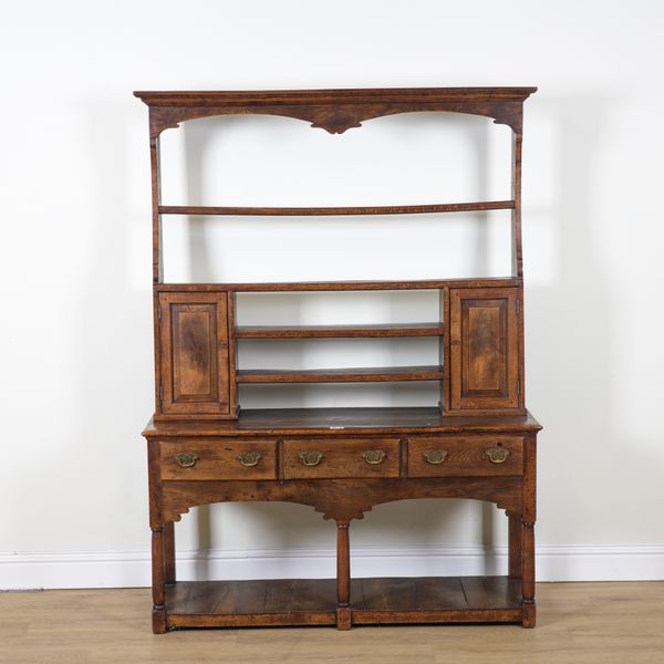 20th century, with four tier open plate rack flanked by cupboards over a three drawer potboard base, 147cm wide; 44cm deep; 200cm high