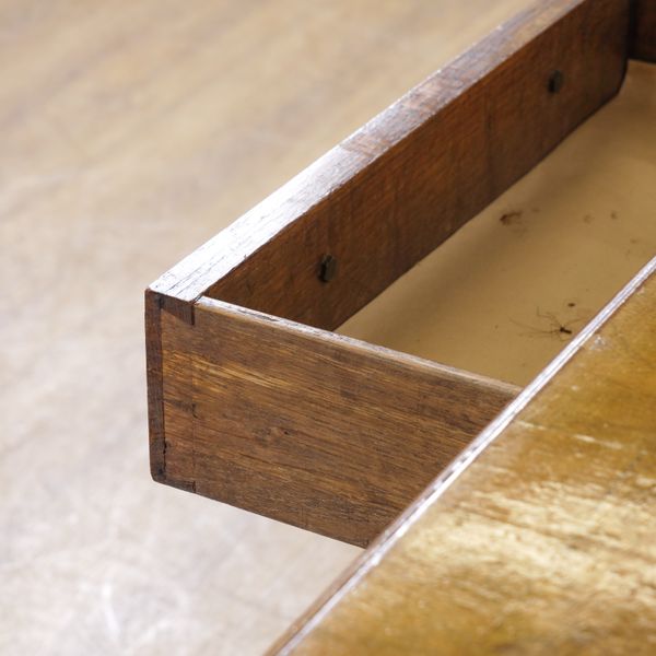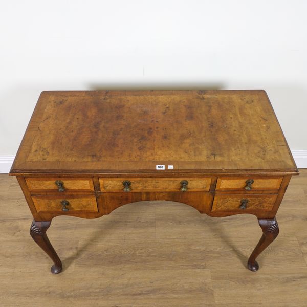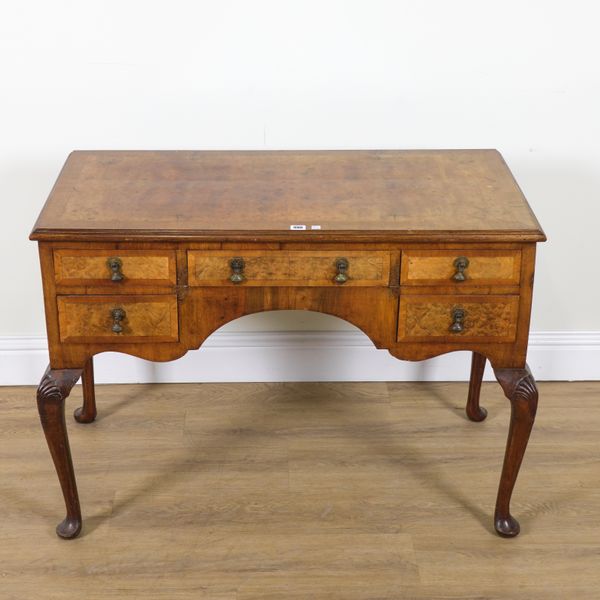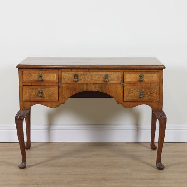 A GEORGE I STYLE FIGURED WALNUT FIVE DRAWER WRITING DESK
