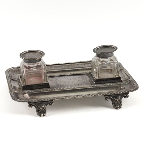 A LATE VICTORIAN SILVER RECTANGULAR INKSTAND