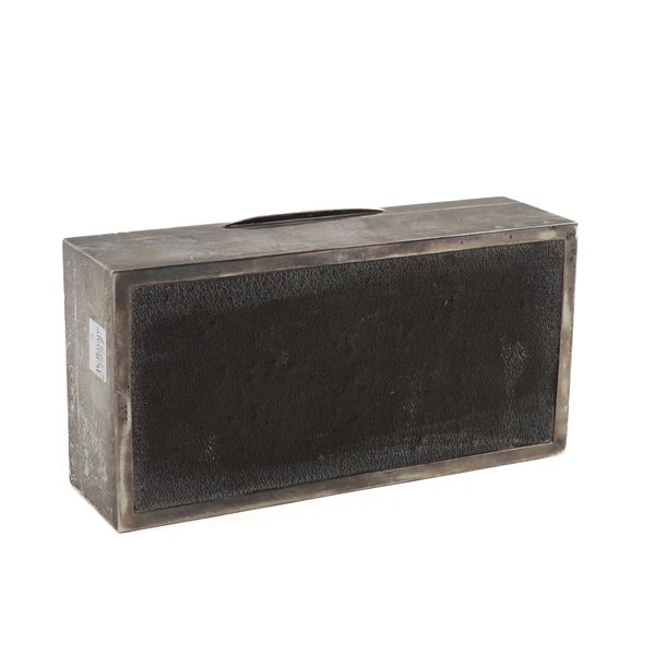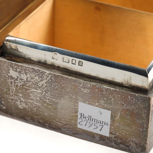 A SILVER RECTANGULAR TABLE CIGARETTE BOX