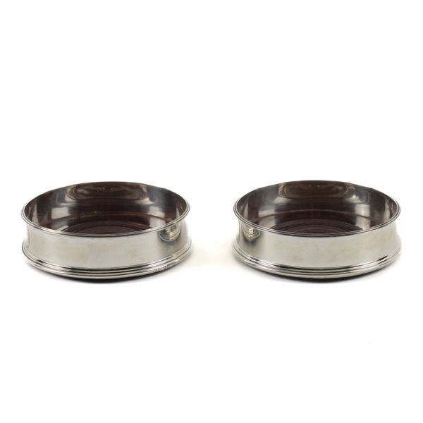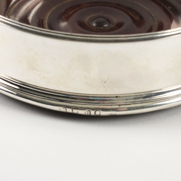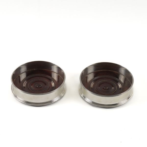 A PAIR OF GEORGE III SILVER MOUNTED BOTTLE COASTERS (2)