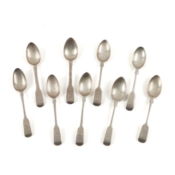 NINE SILVER FIDDLE PATTERN TEASPOONS (9)