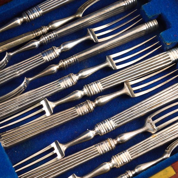 A PART SET OF SILVER DESSERT OR FRUIT KNIVES AND FORKS