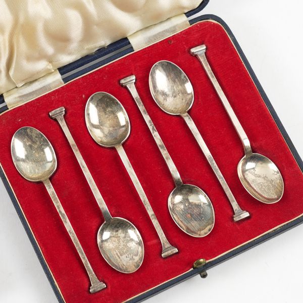 Comprising; a set of six Britannia standard silver teaspoons, with trefid ends to the handles in the 17th century taste, London 1929, a set of six silver coffee spoons, Sheffield 1936, combined weight 138 grams and a set of six pastry forks, having loaded silver handles and with plated prongs, Sheffield 1931