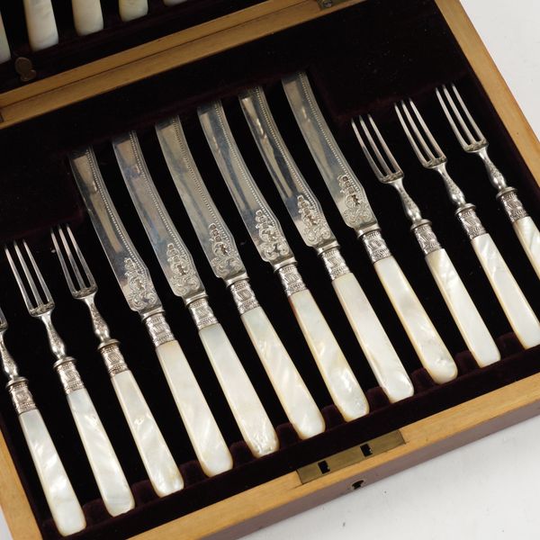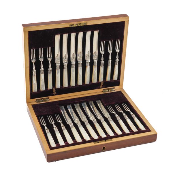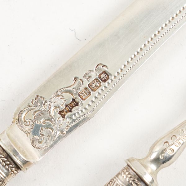 A SET OF TWELVE PAIRS OF SILVER DESSERT OR FRUIT KNIVES AND FORKS