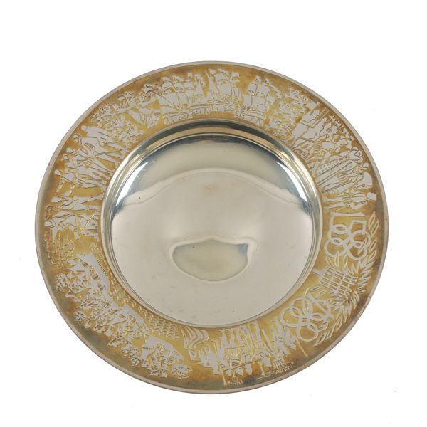 A SILVER PARCEL GILT ARMADA STYLE DISH