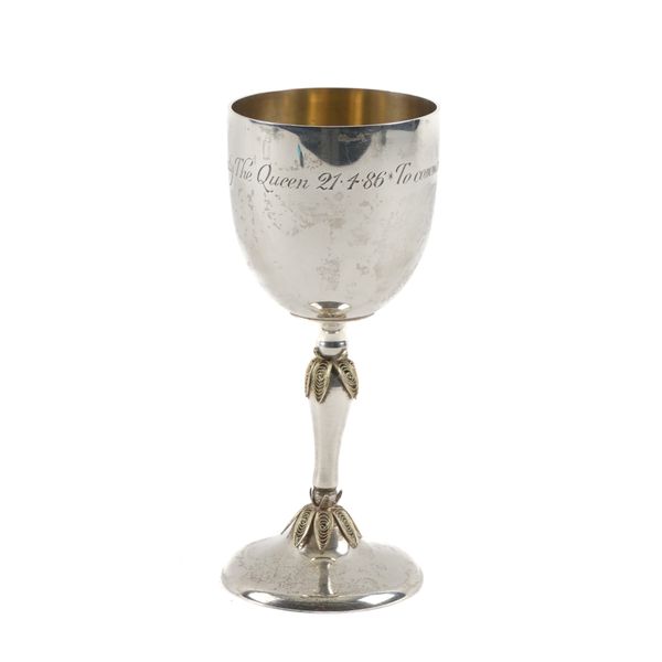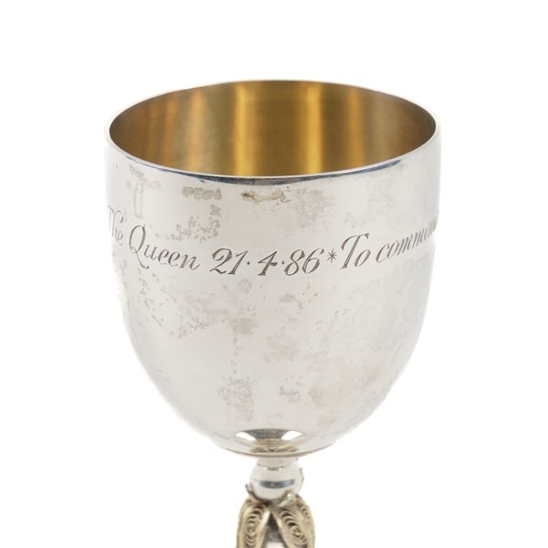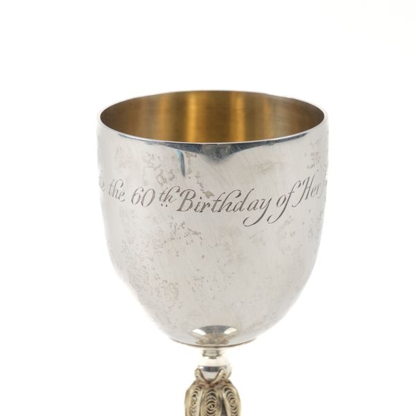 A SILVER GOBLET, COMMEMORATING THE 60TH BIRTHDAY OF QUEEN ELIZABETH II