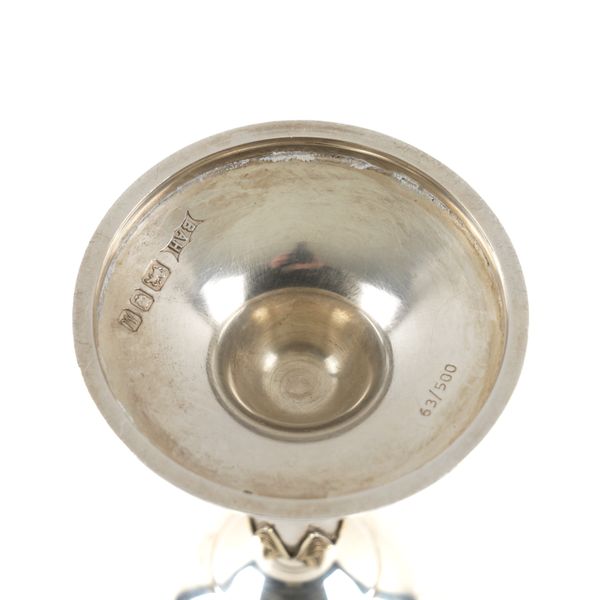 The stem with gilt filigree highlighting, raised on a circular foot, detailed 63/500, London 1986, maker B A H, height 15.5cm, weight 193 grams