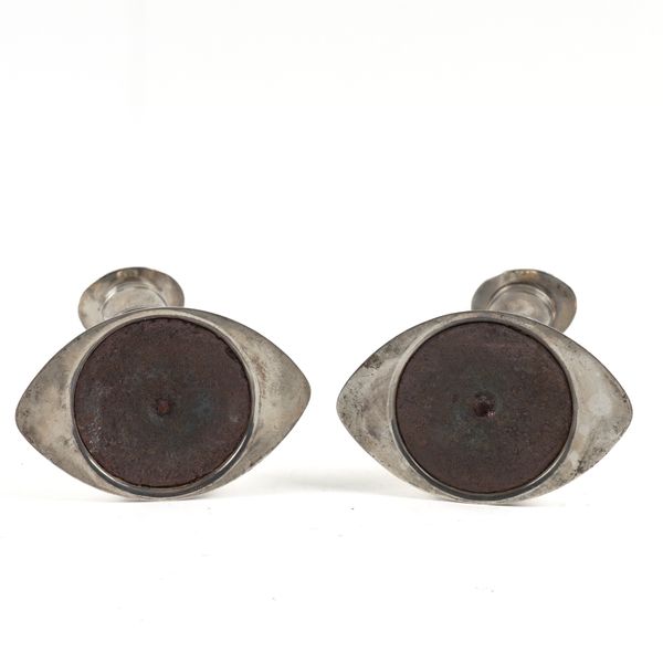 Each with a tapered oval stem, detachable sconce and raised on an oval foot by Hamilton and Inches, Edinburgh 1898, (loaded), height 19.3cm