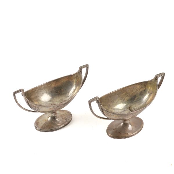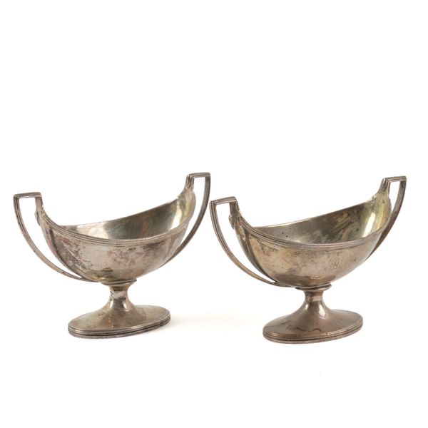 A PAIR OF GEORGE III SILVER TWIN HANDLED SALTS