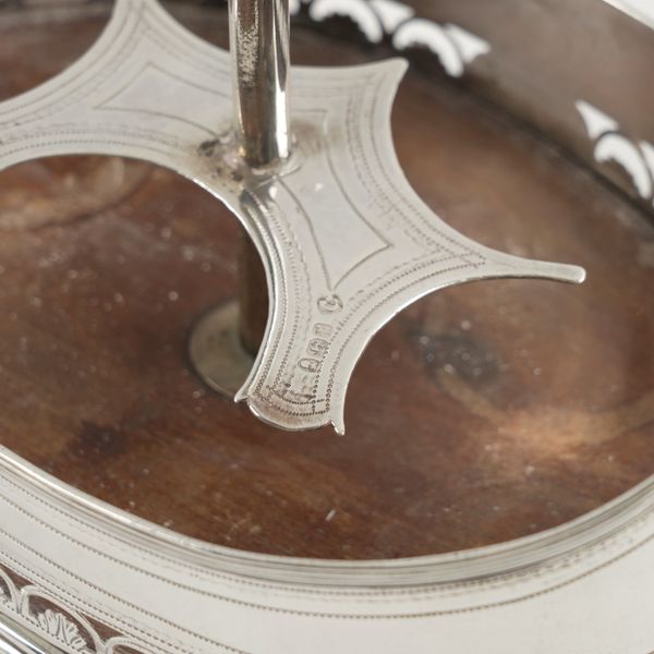 A GEORGE III SILVER MOUNTED FIVE BOTTLE CRUET FRAME