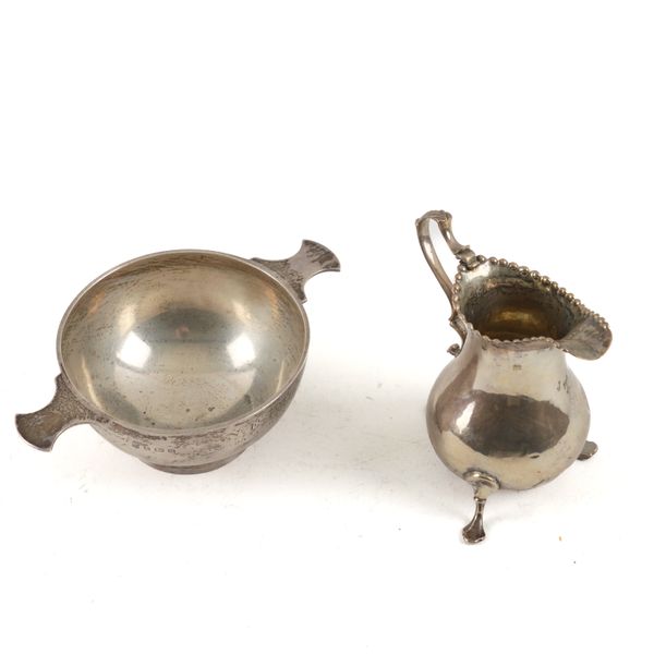 A SILVER TWIN HANDLED BOWL AND A SILVER CREAM JUG (2)