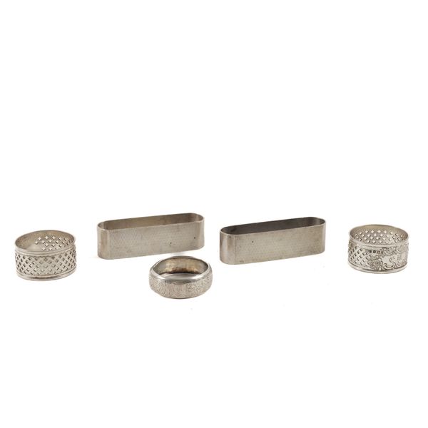 Comprising; a pair of oval form, with engine turned decoration, length 8.4cm, Birmingham 1924, a pair having pierced decoration, Sheffield 1896 and a single example, Birmingham 1891, with three cases, combined weight 169 grams