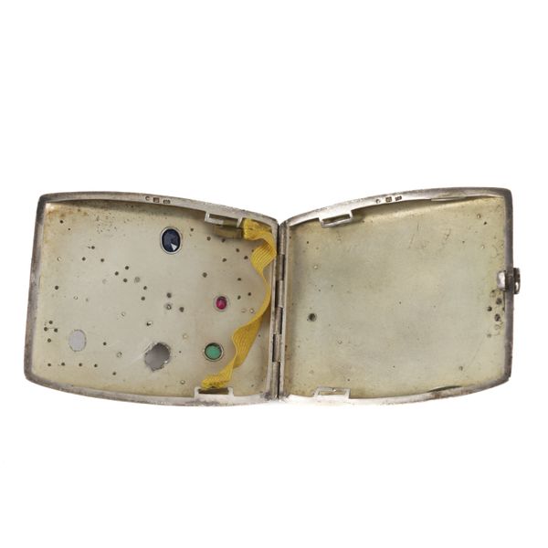 The exterior applied with a variety of mostly gold and gem set fittings, to include an Iranian gold 2000 dinars (one fifth Toman), stick pin finials, initials, names, a coral cameo, a sapphire, a turquoise and further fittings, two fittings lacking, also with facsimile engraved wording, detailed in the interior 900 JL, gross weight 128 grams, probably Polish