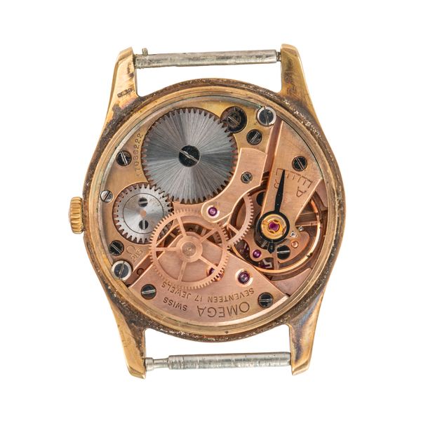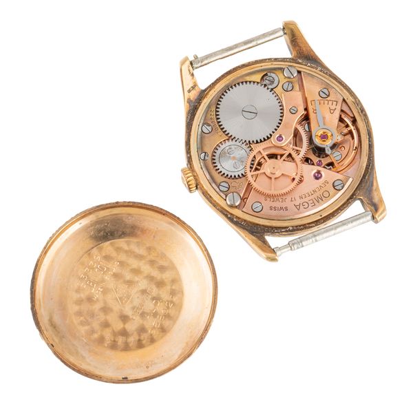 AN OMEGA 9CT GOLD CASED GENTLEMAN'S WRISTWATCH