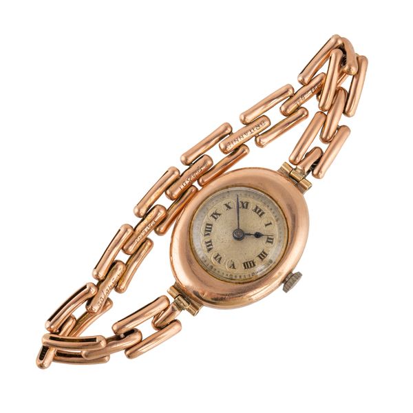 A LADY'S 9CT GOLD OVAL CASED BRACELET WRISTWATCH