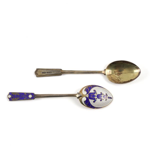 A SET OF SIX SILVER AND ENAMELLED COFFEE SPOONS