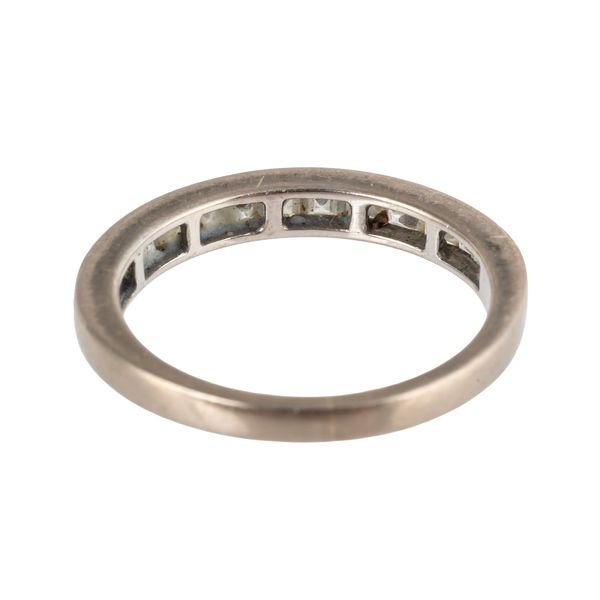 A WHITE GOLD AND STEP CUT DIAMOND HALF ETERNITY RING