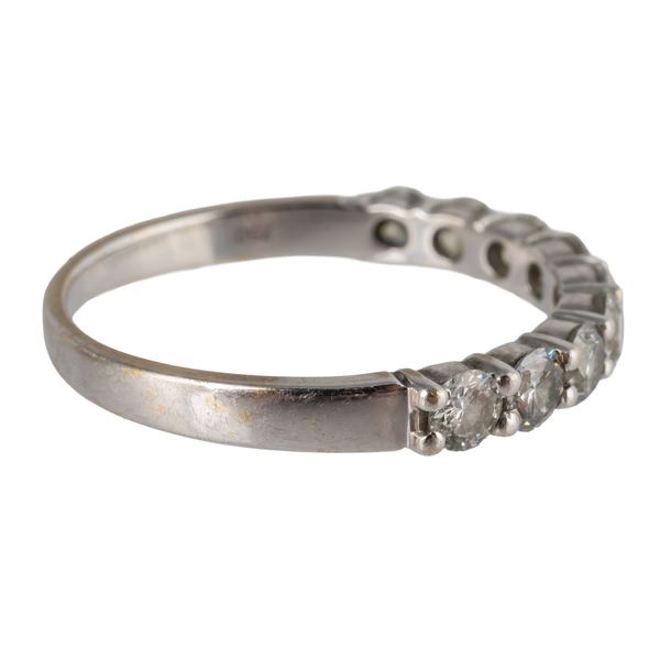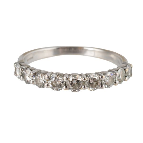 AN 18CT WHITE GOLD AND DIAMOND NINE STONE HALF HOOP RING