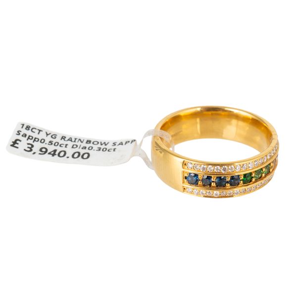 The three green stones are not sapphires, and cannot be tested as they are both in a closed back setting, and are too small.