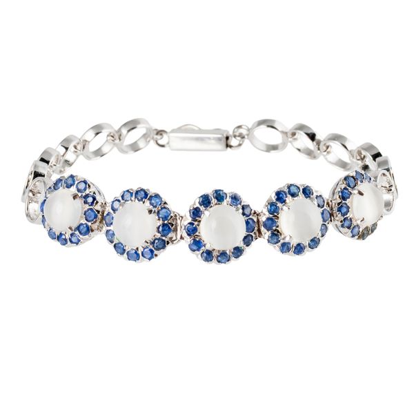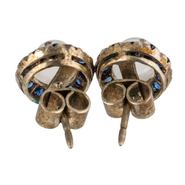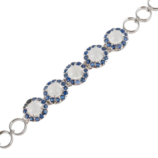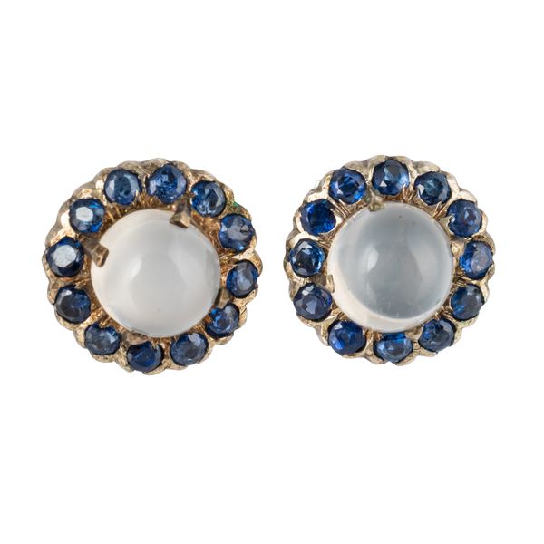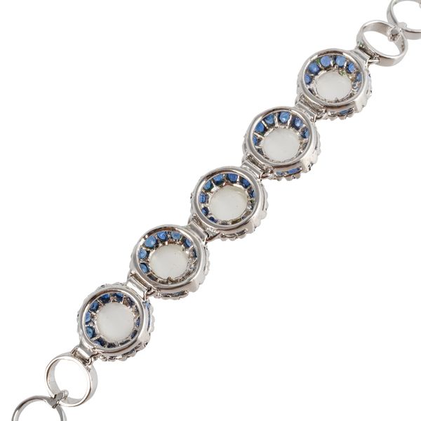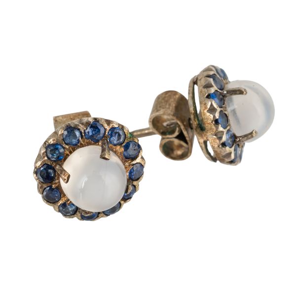 A MOONSTONE AND SAPPHIRE BRACELET AND A PAIR OF MOONSTONE AND SAPPHIRE EARSTUDS (3)