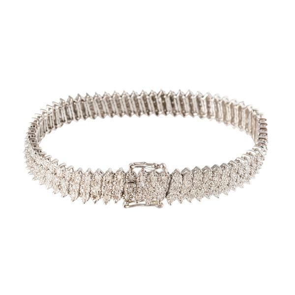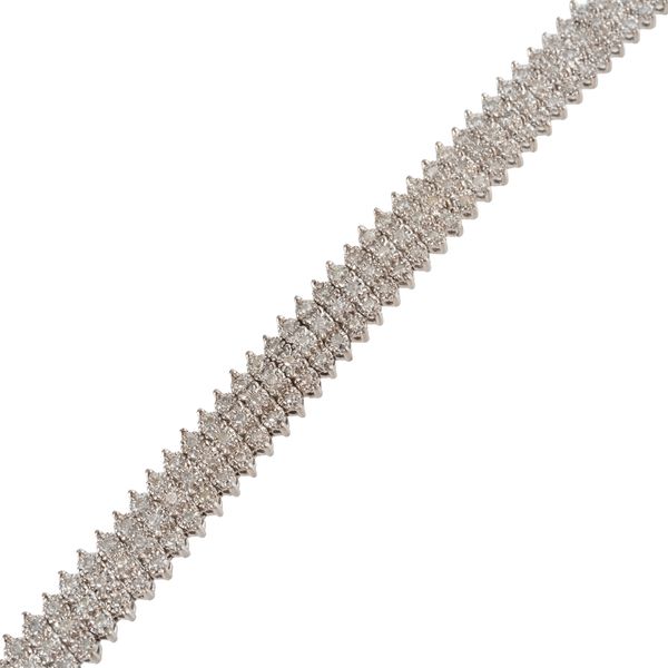 Mounted with three rows of illusion set single cut diamonds, in 18ct white gold, with box clasp and safety clips, measuring 16.5cm in length, gross weight 17.1 grams