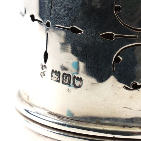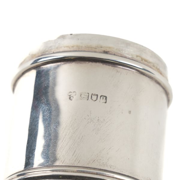 Of cylindrical form, raised on a circular foot, height 18.5cm, London 1911, weight 201 grams